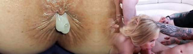 CUM Explosion on Busty Blonde's Face - Interracial MILF Double Penetration Porn