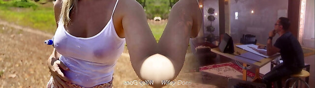 Horny Housewife Flashes Her Boobs and Pussy for the Neighbors