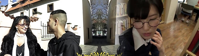 Glasses MILF Fucks Busty Toyboy Student Hardcore