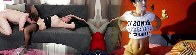 Sexy Four-Eyed Camgirl Sucks Her Gigantic Boobs With Dildo Fury!