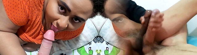 Pink Balloon Blowjob: Brunette Latina Teen Fucks Cupid Boy In Bedroom