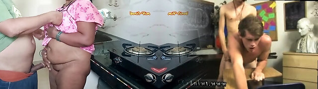 Anal Sex with Big Tit Brunette MILF Wife in the Kitchen While Hubby Watches
