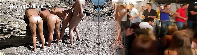 Fucking Hot BBW Beach Cum Party: Voyeuristic Scene Featuring Two Nude Men Having Sex Outside