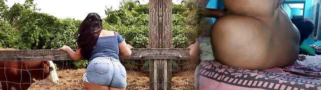 Horny Brunette Busty BBW Sex with a Farm Animal