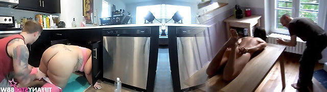 Busty MILF Gets Her Tits Rimmed By Horny Man In Kitchen Blowjob Action!