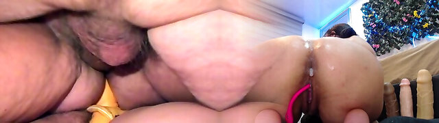 Big Boobs, Big Cocks: Two Busty BBWs Fuck Young Guy's Tight Rimming Hole!