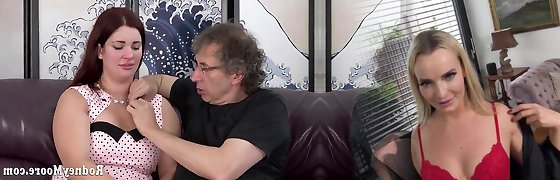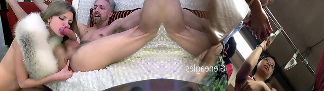 Angela White's Big Tits Rimmed by Two Horny Women While Her Wimp Husband Watches!