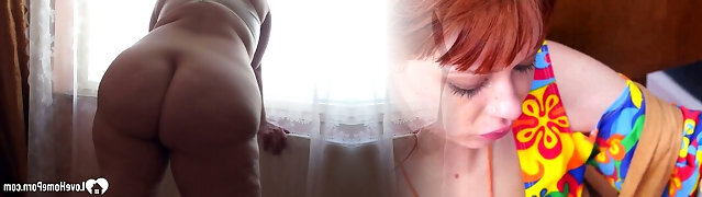 Horny BBW with Sexy Curly Red Hair Gets Cum-Filled Blowjob!