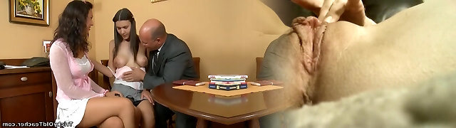Horny Older Man Fucks Two Hot Teens in His Office