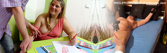 Fucking the Teacher: Brunette Bombshell Gets Nailed by Her Hot Instructor's Cum-Filled Cock!