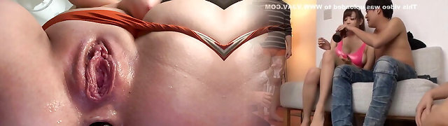 Horny Brunette Tits get Squeezed and Sucked while Getting Fucked in Living Room