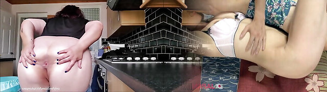 Cum-Slurping Busty Brunette Squirts Her Juices All Over The Kitchen Counter
