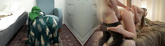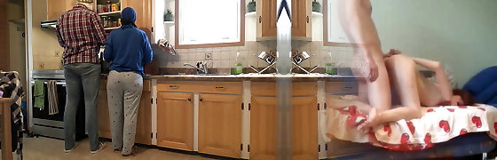 Fucking Stepdad Catches His Son Fucking His Wife in the Kitchen
