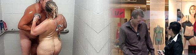 Giant Busty Wife Gets Fondled in Shower Bathroom Sex