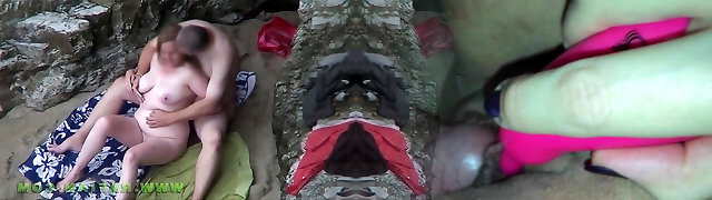Relaxing Ocean Backdrop as Mature Couple Enjoys Passionate Sex on Rough Sand!