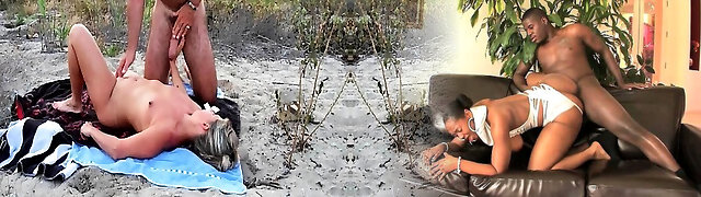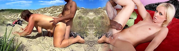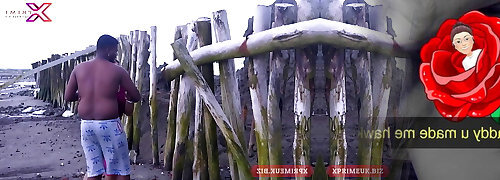 Interracial Busty Slut Gets Fucked by Black Cock on Public Nudist Beach!
