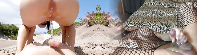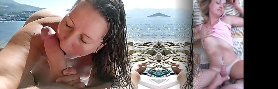 Horny Milfs with Round Asses Get it On at the Beach: Cum Dripping Blowjobs & Sexy Beach Play