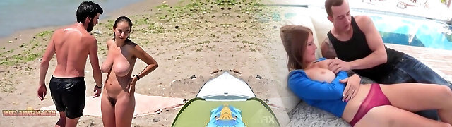 Sexy Busty Girls Fuckin' Hard on the Beach: Straight Up Porn Action!