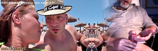Horny Blonde Slut Gets Cummed on by Strangers on Spanish Beach