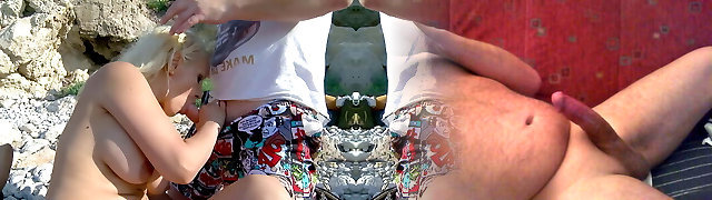 Sexy Teen Gives Blowjob to Big Dick on Natural Rocky Beach