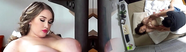 Red Hot Busty BBW Spreads Legs for Skinny Guy