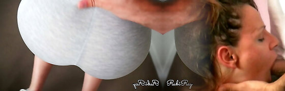 Blowjob in Tight Yoga Pants: Smooth Pussy Cum Shot