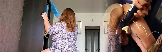 Cock-Hungry StepMom Gets Fucked By Teenage Boy Next Door While Cleaning Kitchen Cabinets