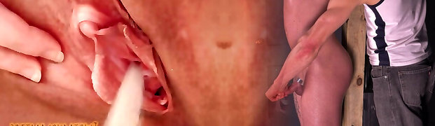 Intense Close-Up of Old German Pussy Cream Pie