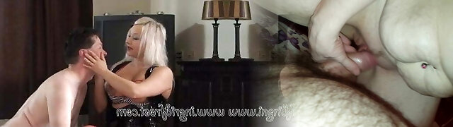 Cumshot Orgy: Fat German Mistress Squirts Over Sklave Guy's Face