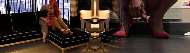 Busty MILF Dominates Horny Guy with High Heel Facesitting