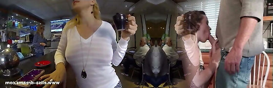 Blonde Beauty Sucks Dick While Cooking Dinner - Flashing Porn