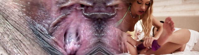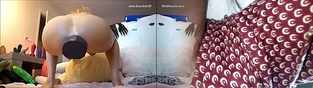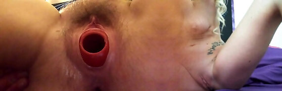 Busty Blonde Gapes Her Hole With Big Blue Toys!