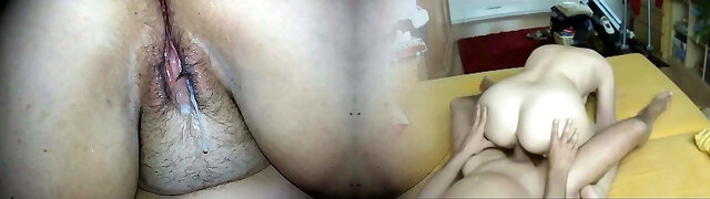 Cum-Filled Pussy After Fuck Session on Dining Room Table
