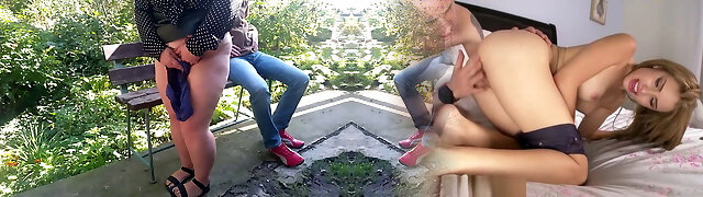 Busty step-sis gets fucked by her hot stepbro while pleasuring herself!