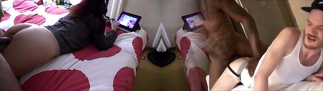 Horny Big Booty Teen Swallows BBC on Lesbian Homemade Porn