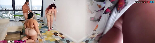 Horny BBW Threesome Gets Nasty During Living Room Massage Session!