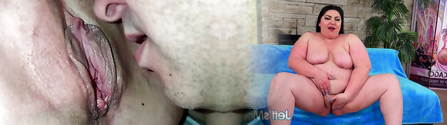Grandpa's Hot BBW Granddaughter Gives Him a Wet Pussy Licking Birthday Surprise!