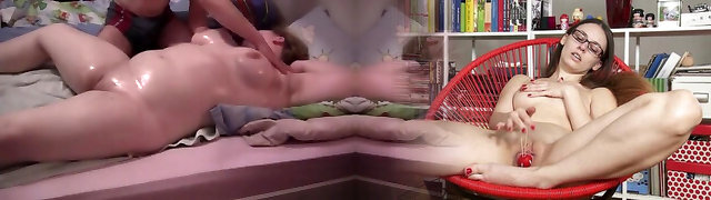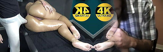 Pussy Lips Slippery with Oil, Fucked Hard During Massage