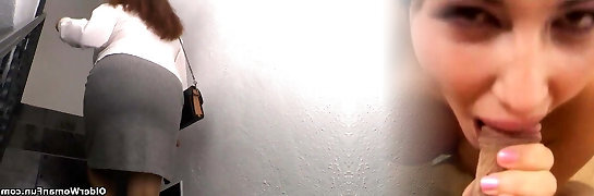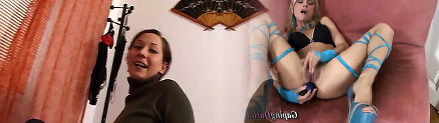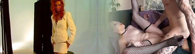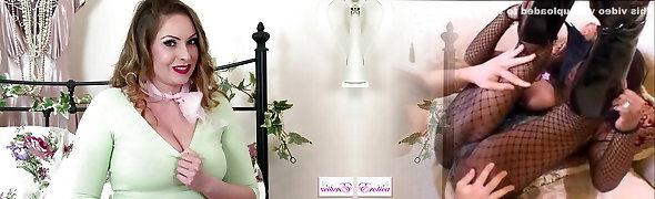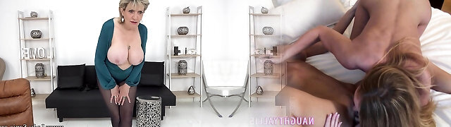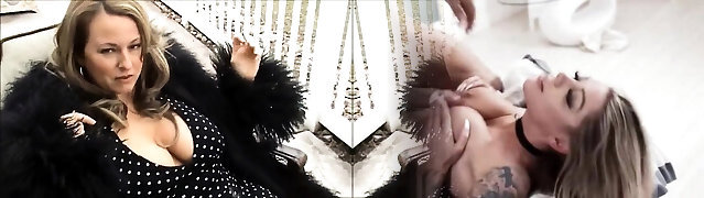 Shaved Pussy Alert! Hot MILF Kaylea Sucks On Her Toys While Sitting on a Striped Sofa, All In Nylon Garb