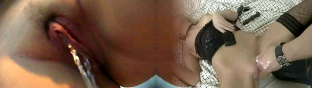 Tight Brunette Bitches: Shaved Pussy Cum Splash