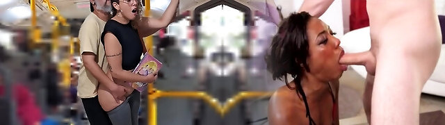 Horny Amateur Fucks Hot MILF on Public Bus While She Sucks His Big Dick