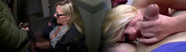 Sexy Busty Blonde Takes Giant Cum-Filled Dick in Public!