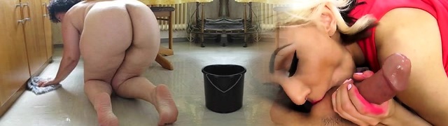Fat Wife Mops the Floor and Gets Horny as Hell in Public Voyeur Video!