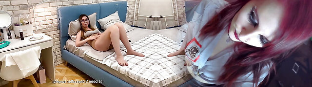 Hot Lesbian Dildo Play in Bedroom