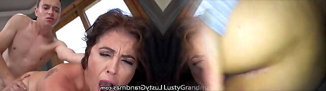Busty Grandma Gets Dominated by Young Stud in a Violent Blowjob Session