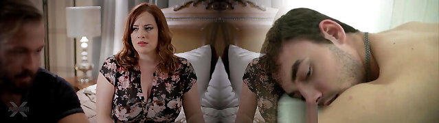 Husband's Surprise: Busty Redhead Fucks Wife In Bedroom