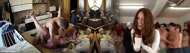 Sexy Blowjob Queen Sucks Her Way Through a Living Room Orgy