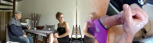 Horny Voyeurs' Cum Shot Fantasy Fulfilled as Busty Tits Chat over Dinner Table